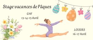 Pendant les vacances scolaire d’Avril le club propose plusieurs journées de stage de gym ! Ces journées sont réservées aux gymnastes inscrites en GAF ou en Loisirs. Objectif : travail technique, perfectionnement sur les agrès et maintien du rythme d’entraînement pendant les vacances, dans une ambiance motivante Date GAF 13-14-15 AVRIL 2026 Les gymnastes peuvent s’inscrire …