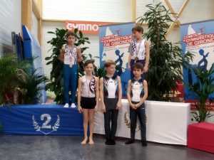 Samedi, lors du championnat départemental des individuels Performance, Nina, Loucas, Daniel et Jérome ont défendu les couleurs du l’ES Bruges Gymnastique.